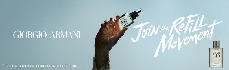 In una nuova bottiglia moderna, l'icona conserva il suo vetro satinato, segno distintivo della fragranza, che ora sfuma nel vetro trasparente alla base del flacone. Come parte dell'impegno di Giorgio Armani per un futuro migliore, l'icona è ora ricaricabile: ogni formato di ACQUA DI GIÒ EAU DE TOILETTE è progettato per essere svitato e ricaricato a casa con la bottiglia di ricarica da 150ml venduta separatamente. ACQUA DI GIÒ EAU DE TOILETTE segna l'inizio della fragranza e rimane ancora oggi la sua firma originale.